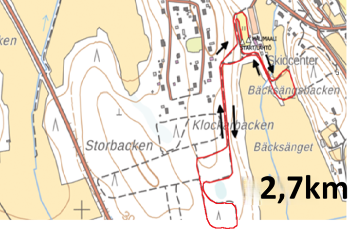 1, 2, 2,7km spåren används. Spårkarttorna hittas nere på denna sida